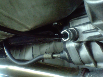 【最大の難所である関所】 いやはや、やっぱ、ここがネックだった。下から見上げた図である。この写真には、ブレーキラインが見えるが、この手前は、フロントメンバーとその脇に集まるブレーキラインで腕がギチギチ・・・セルモーターもあって熱いし・・・うぎゃぁ〜〜〜傷だらけ血だらけ(>_<) 泣けました。 旧ケーブルの取り出しは、ひたすら下へ引きずり出して再びエンジンルーム上方へ引き出した。新規ケーブルは、エンジンルーム上方から挿入し、ミッションまでの所定位置へ概略セット。その後、このグロメットとの攻防に・・・・ ケーブルのメーター取り付き頭部が大きく、確かにこれだけのグロメット大きさいるわ。と同時に、こいつがケーブルの向きを固定する!故に、この穴を通して室内へ入れるのが辛いのなんの。ケーブルが小さくは曲がらんし、自分の腕の自由が効かないし(ブロックに乗り上げて車が片側上がった状態へ仰向け寝転がりじゃぁねぇ・・・身体が潜りこめるだけ) でも、これさえクリアすれば、あとは簡単! さぁ、みなさんも、やってみますか??? |